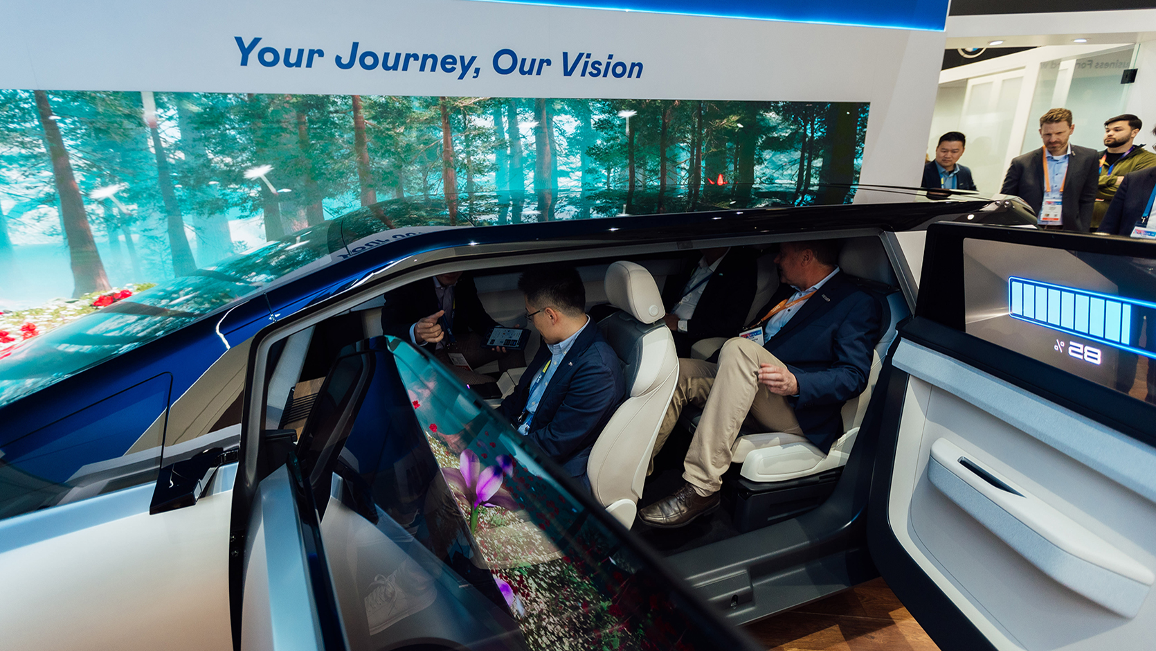 In collaboration with our partners, we create innovative and human-centered designs for vehicle cockpits, providing immersive visual experiences and limitless interactions with cars. Experience the fascination of Micro LED technology through our work with Ennostar and PlayNitride on new applications. We are glad to partner with Saint-Gobain Sekurit to develop virtual sky canopy and utilize powerful in-vehicle computing solutions with ADLINK.