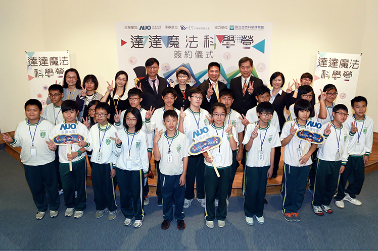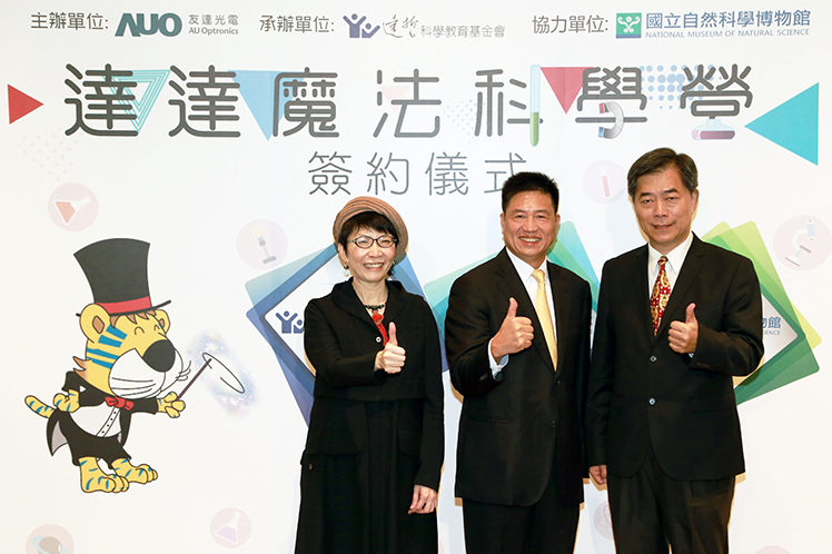 友達光電董事長彭雙浪、國立自然科學博物館館長孫維新,以及遠哲科學教育基金會執行長馬蕙蘭出席達達魔法科學營簽約儀式